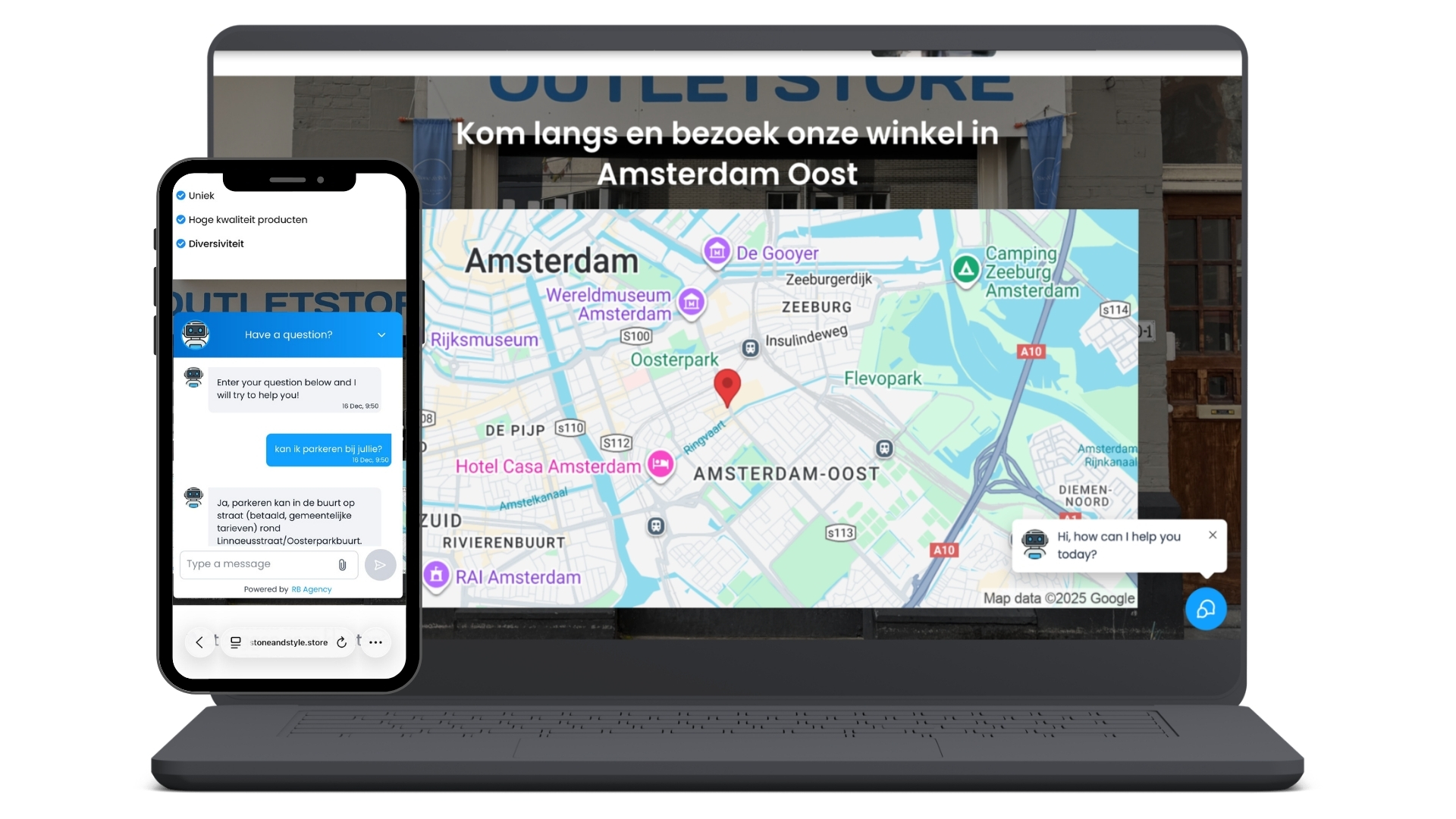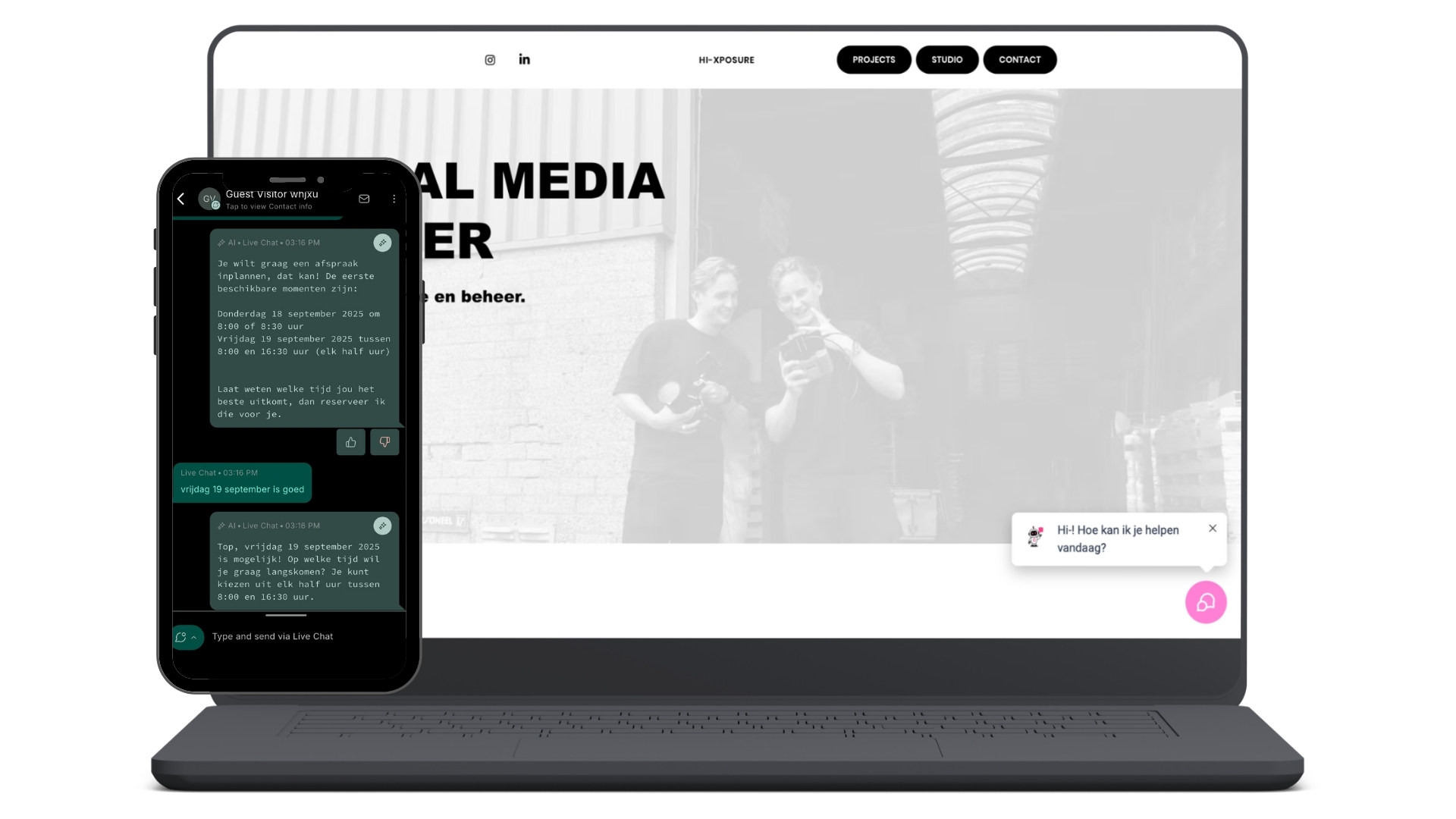 Naast de chatbot bieden we ook een voice agent: een spraakgestuurde assistent die dezelfde functies heeft, maar dan via telefoon of voice-interface. Ideaal om telefoondruk te verlagen en klanten sneller te helpen. Samen vormen chatbot en voice agent een krachtige, 24/7 beschikbare oplossing die je bereikbaarheid verhoogt, je werkdruk verlaagt en je klanten een professionele en vriendelijke ervaring geeft.